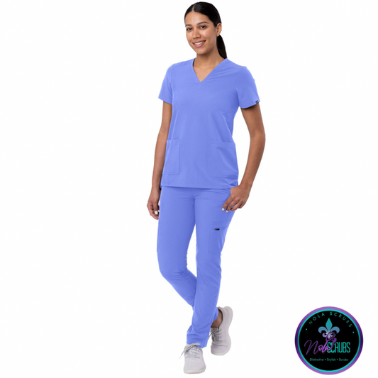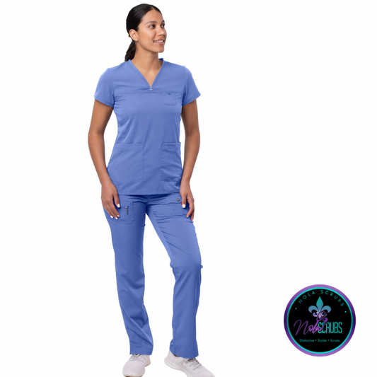 Nola Unisex V-Neck/Drawstring Pant Scrub Set - Ceil Blue