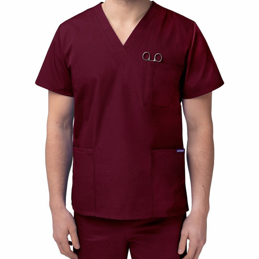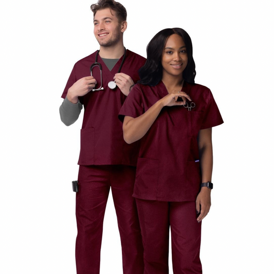 Nola Unisex V-Neck/Drawstring Pant Scrub Set - Burgundy